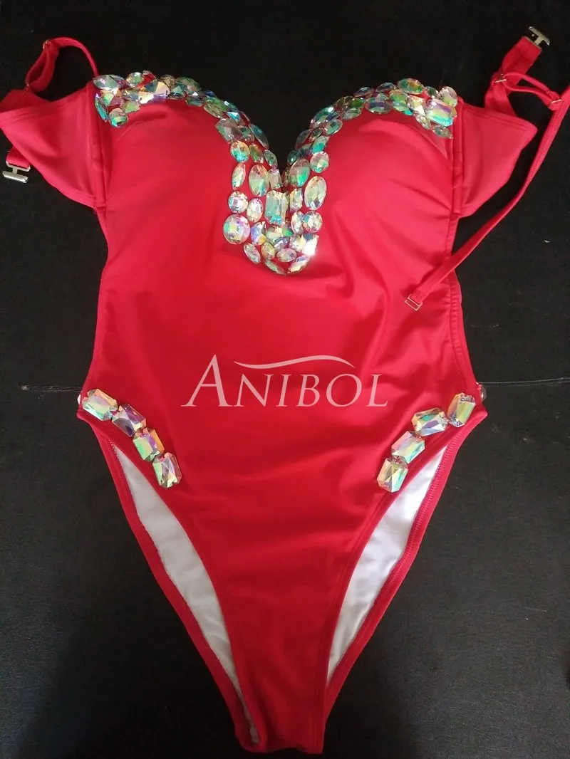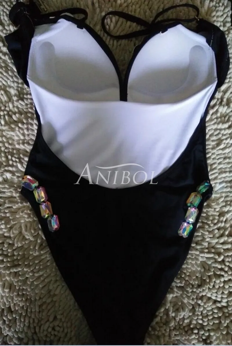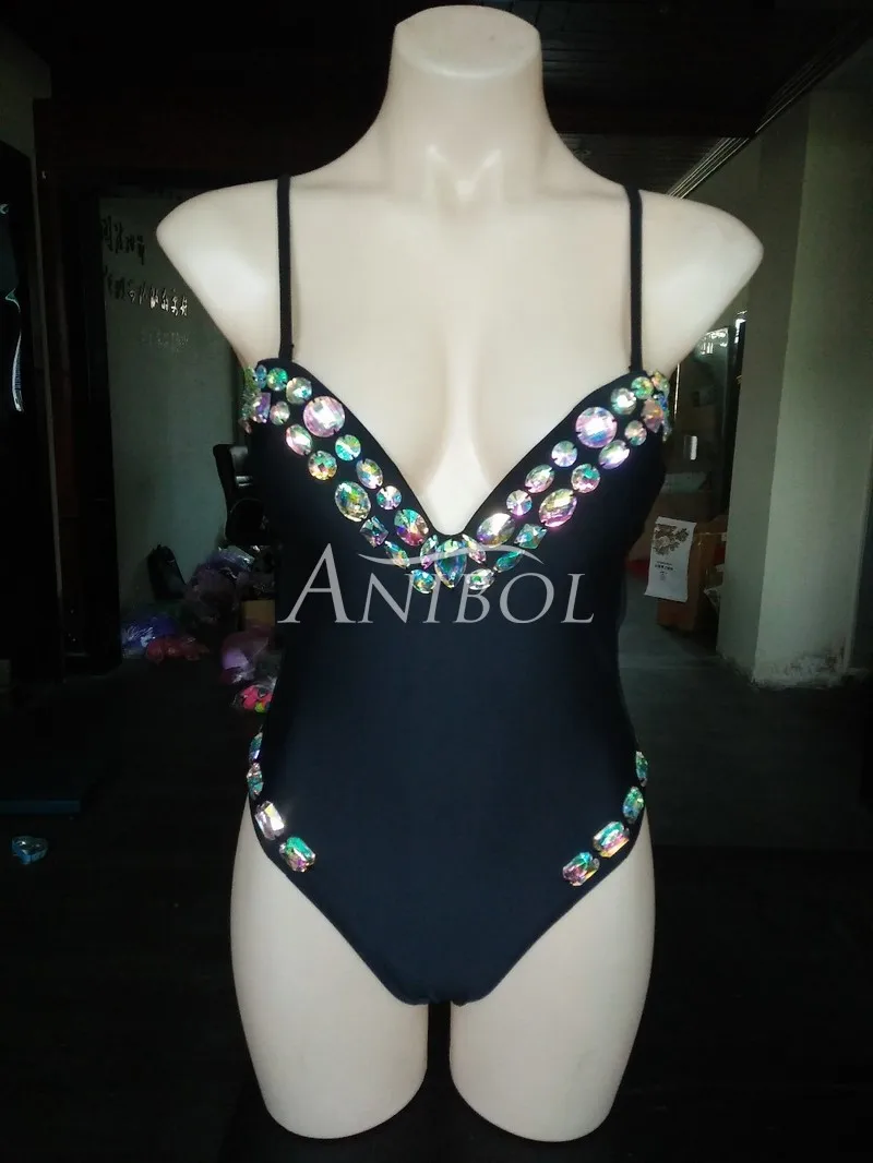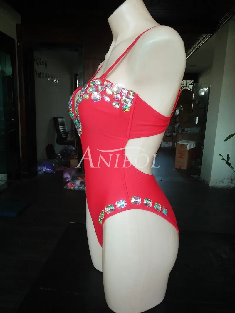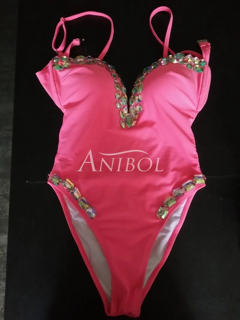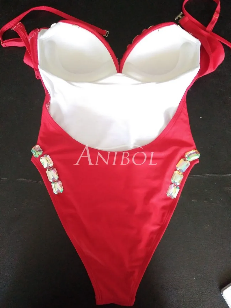 Costume da bagno intero di lusso con diamanti Taglio basso Costume da bagno sexy con strass da donna Cinghie Costume da bagno in cristallo con scollo a V profondo
