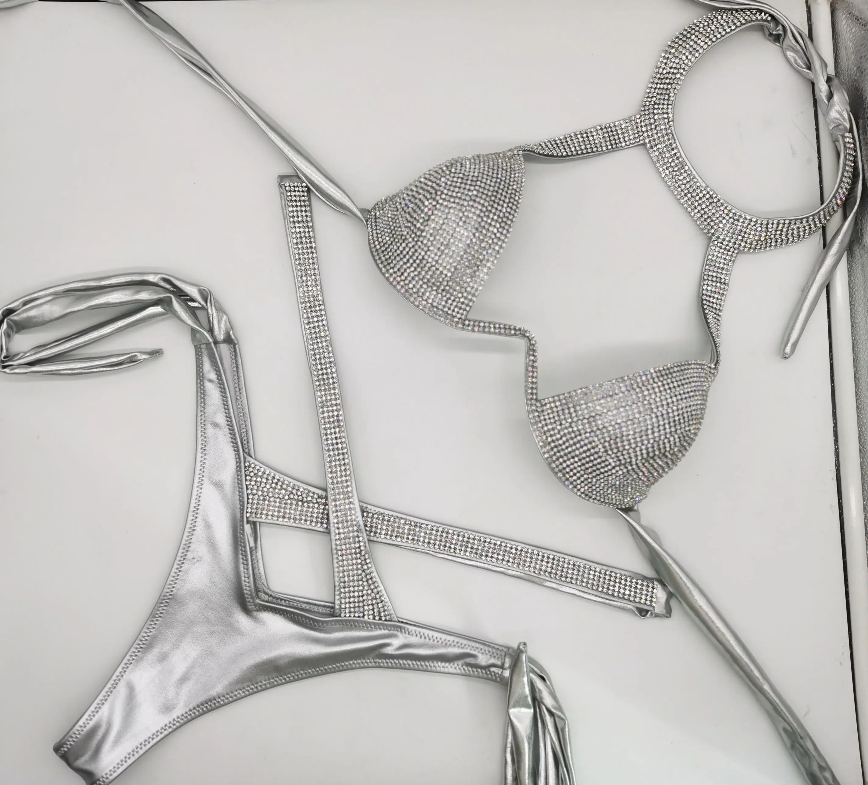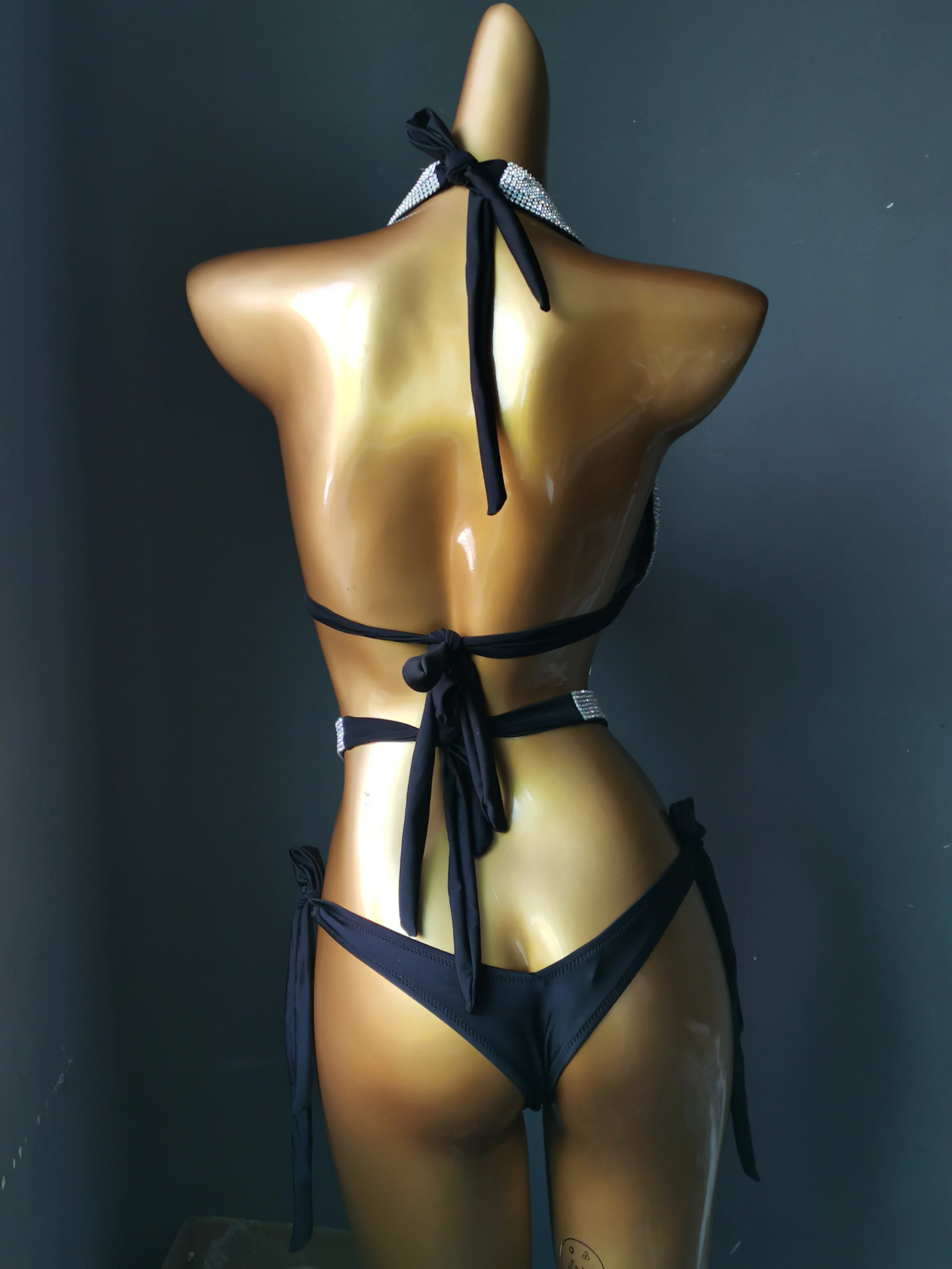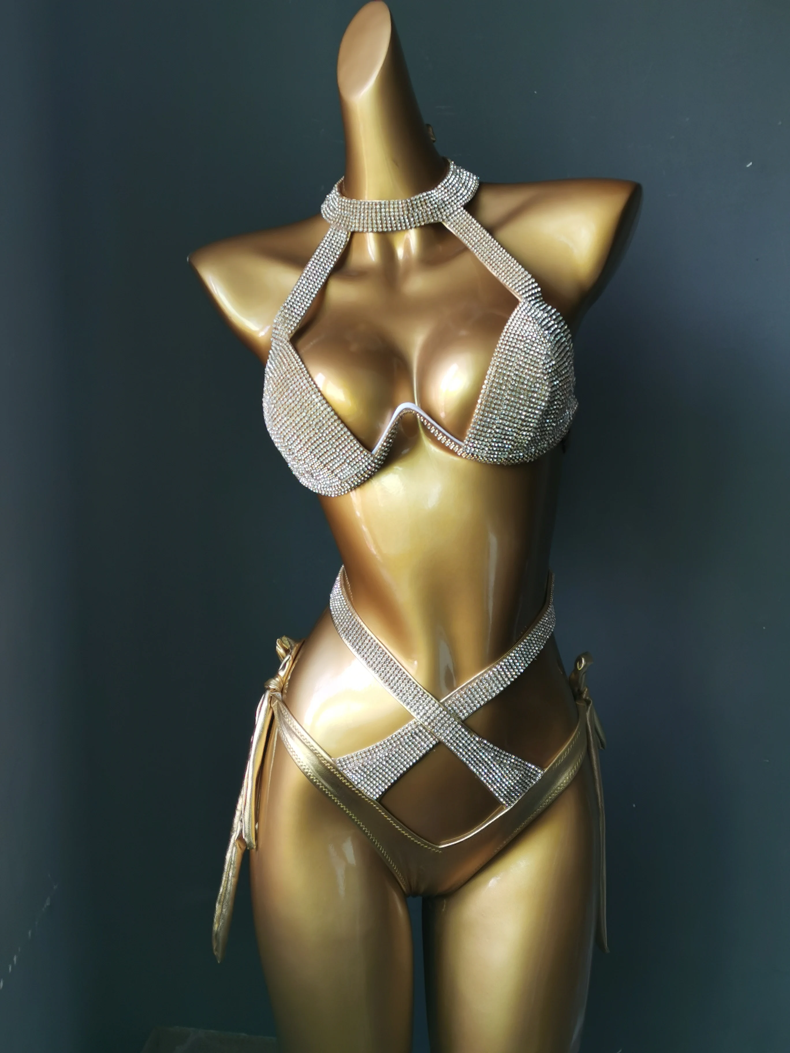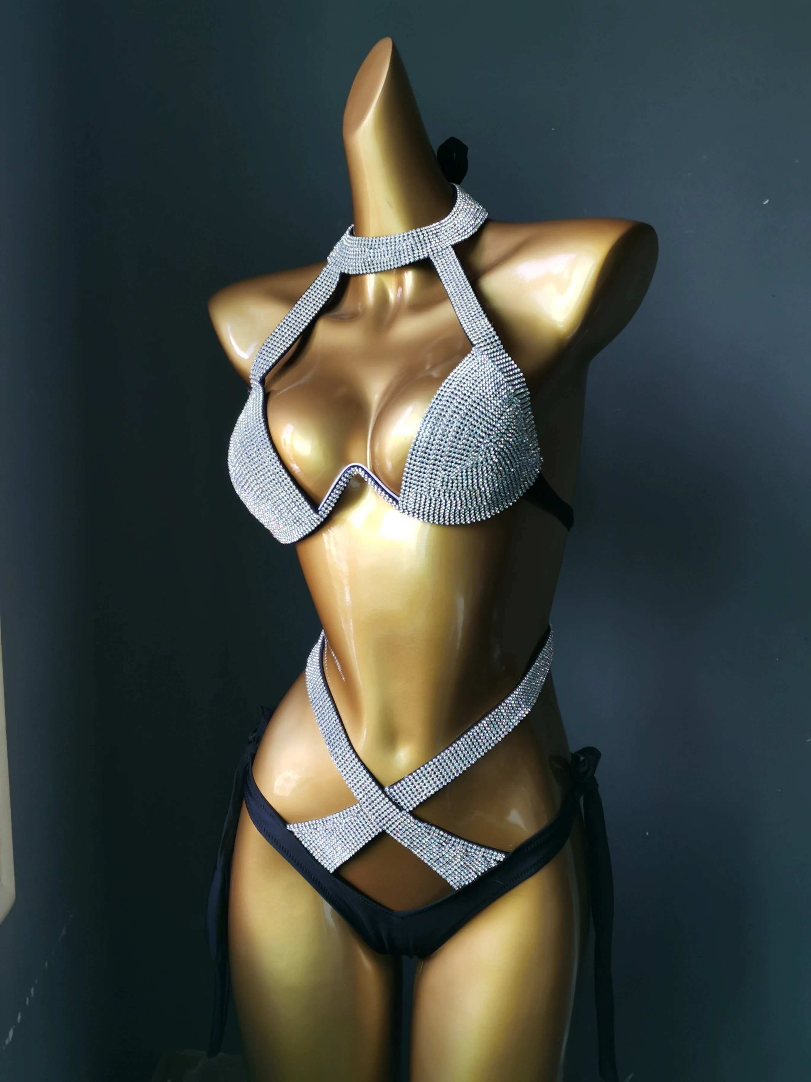 Costume da bagno da donna sexy con strass in cristallo e diamanti raccolti, costume da bagno da donna con fascia push up alla caviglia