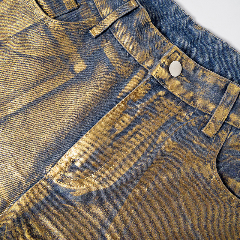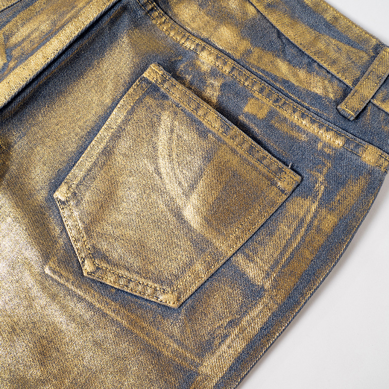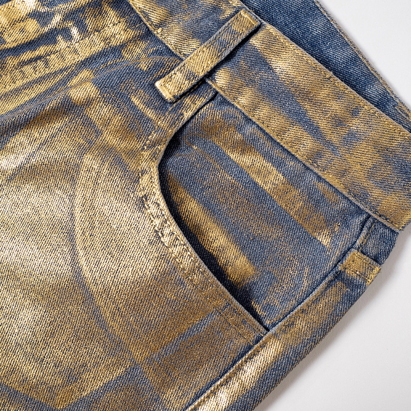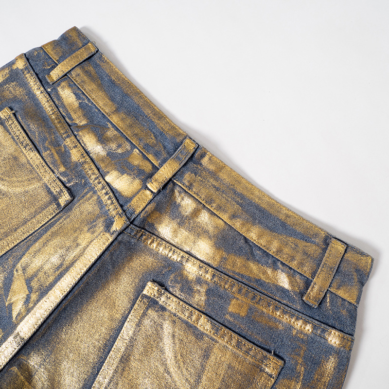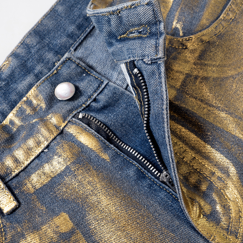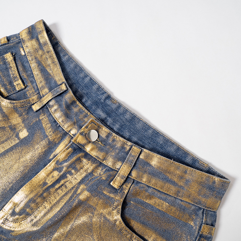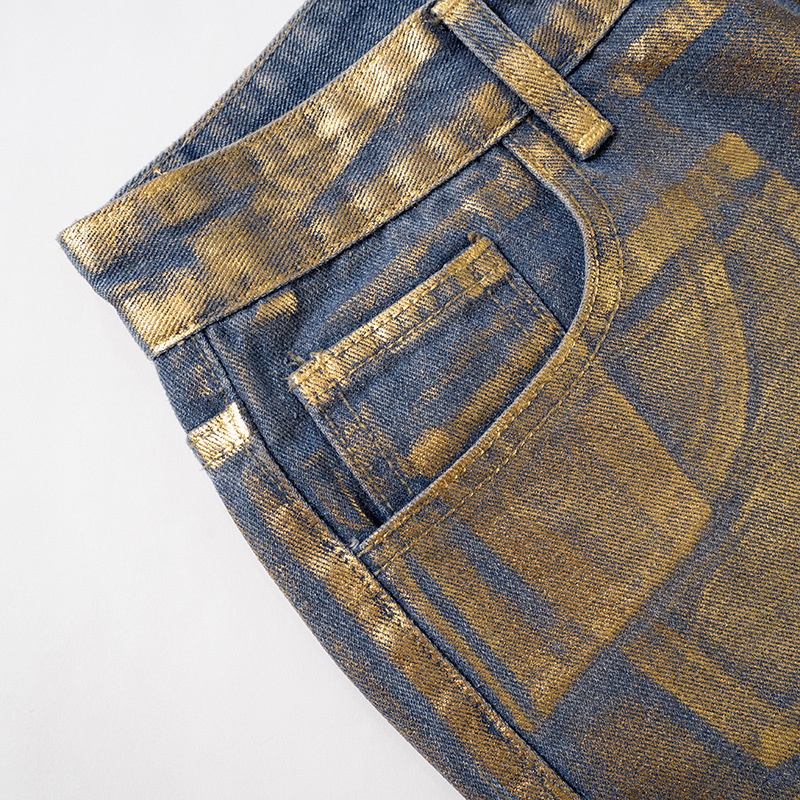 Metallic Gold Silver Straight Leg Jeans High Waist Pants For Women Streetwear Vintage Autumn Y2K Denim Trousers