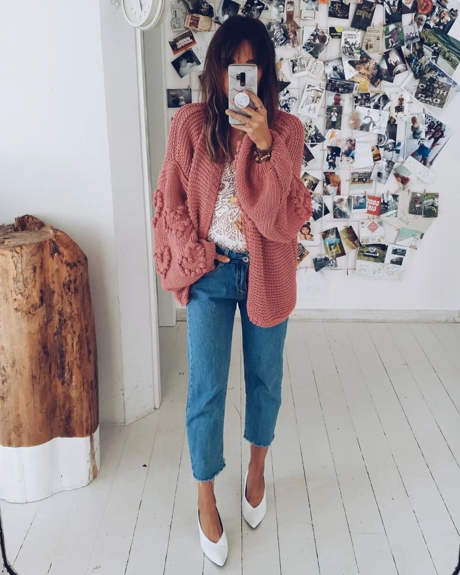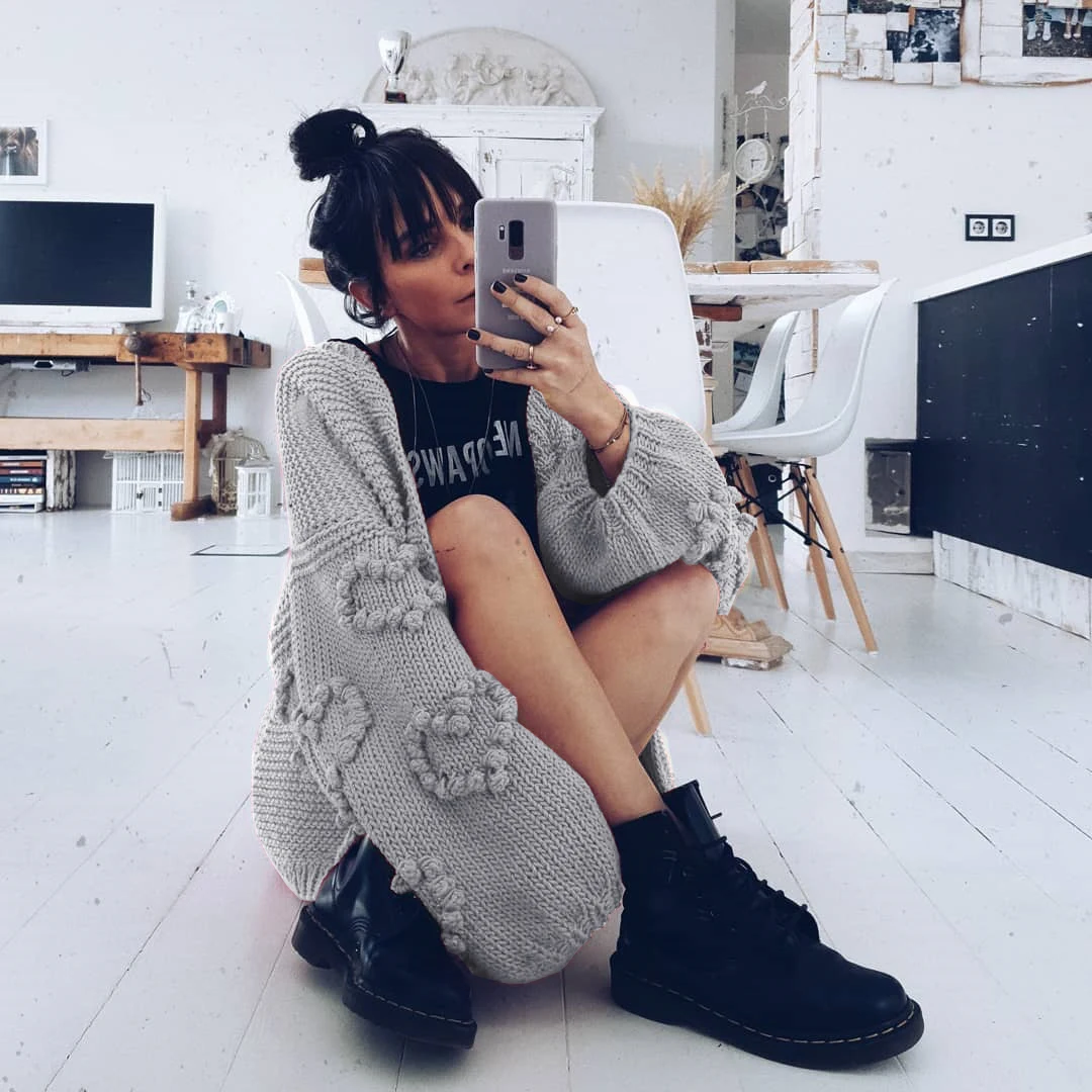 AYUALIN Lantern Long Sleeve Oversize Sweater Cardigans Vintage Heart 2024 Knit Autumn Winter Coat Women Loose Jumper Outwear