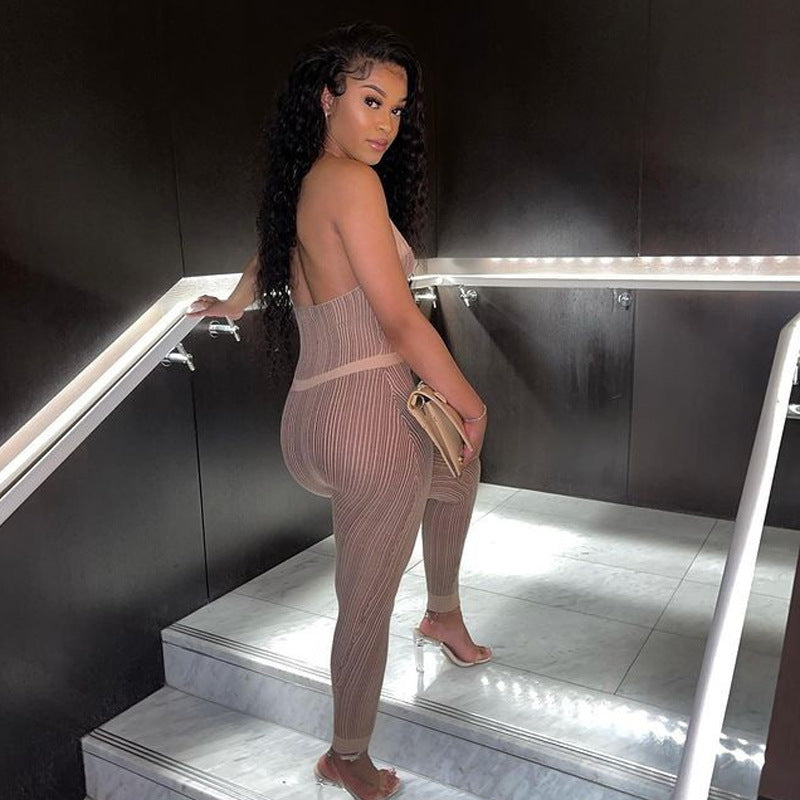 Printed Contrast Halter Bodysuit High Waist Hips Jumpsuit
